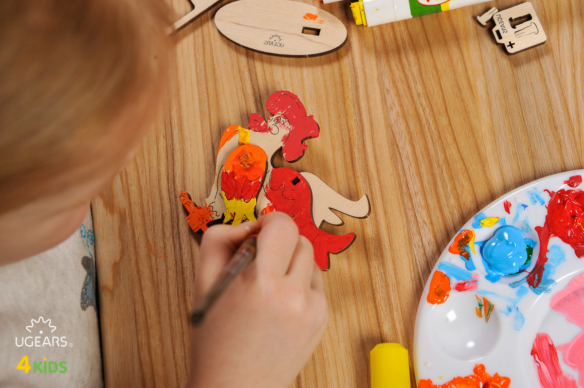 Paint according to your own imagination: Whether with acrylic paints, gouache, watercolors or markers - use the color that is right at hand. The models can be painted alone, with friends or together with the whole family. The delicate contours show the silhouette of the rooster and help to paint the model in next to no time.